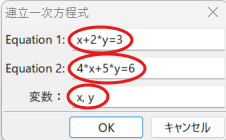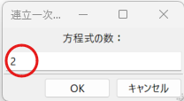 選択すると、何本の式が連立しているんだか聞かれます。ここでは2本っす。こんな感じ。