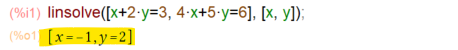 使われているのは linsolve関数ね。なお、linsolve関数は「ガウスの掃き出し法(老人もはるか太古の時代に習った気がしますが、忘却の彼方よな)」を使って求めてくれてるみたいです。