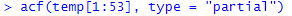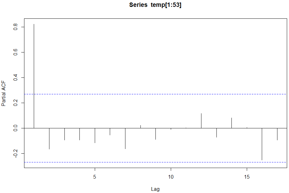 一方、同じデータに対して偏自己相関関数(Partial Autocorrelation Function: PACF)も求めてます。