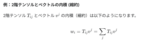 なお以下は、例によってGoogleの生成AI、Gemini 2.5 Flash様にお教えいただきました内積(縮約)ご説明であります。