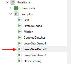 今回、鑑賞させていただくデモは、以下で選択可能な Modelica.Mechanics.Rotational.Examples.LossyGearDemo2 です。さすが歯車(ギア)は機械工学のプリマドンナ、ギアについては3つもデモがある中の2つめです。