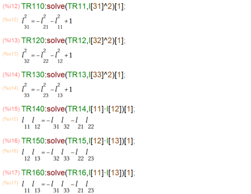 ここで、座標変換行列 L は以下のように書かれてます。Lの各要素の値は、それぞれの単位ベクトル組の内積をとれば計算できるんでないですか?