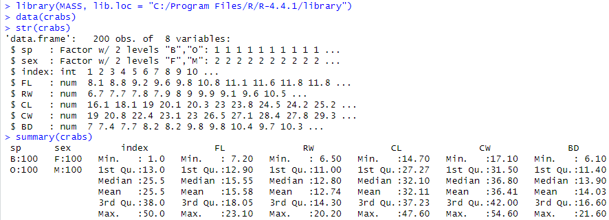 https://stat.ethz.ch/R-manual/R-devel/library/MASS/html/crabs.html