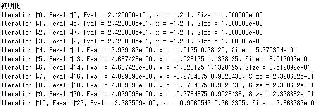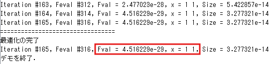 でもね、プロの人がみたらば、”neldermead_”関数群の凄いところが分かるのかもしれんけど、素人老人には有難みがサッパリっす。そんなメンドクセーことしないでも結果に至るし、途中経過もみられるfminsearchでいいんでないの?罰当たりな。